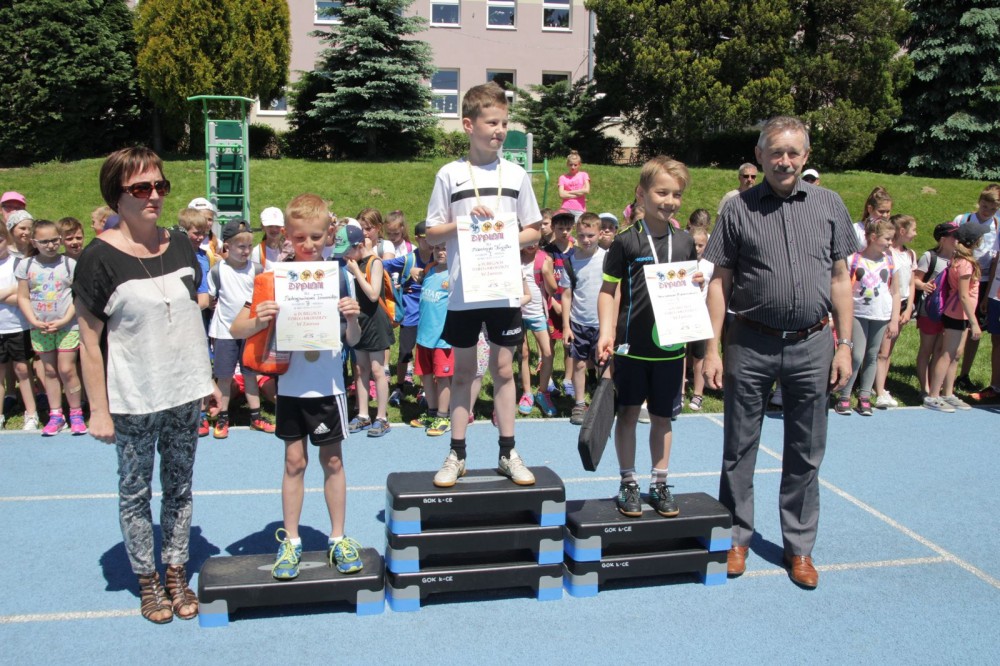 Nagrodzeni biegacze z rąk Wójta Gminy Andrzeja Pitery otrzymali medale, dyplomy i nagrody rzeczowe, których fundatorem był Gminny Ośrodek Kultury w Łodygowicach. Wszyscy uczestnicy zawodów zostali uhonorowani słodkim poczęstunkiem oraz kuponami na dmuchaną zjeżdżalnię. Dyrekcji Zespołu Szkolno-Przedszkolnego w Zarzeczu serdecznie dziękujemy za nieodpłatne udostępnienie terenu boiska szkolnego na przeprowadzenie imprezy plenerowej dla naszych milusińskich z okazji ich święta!